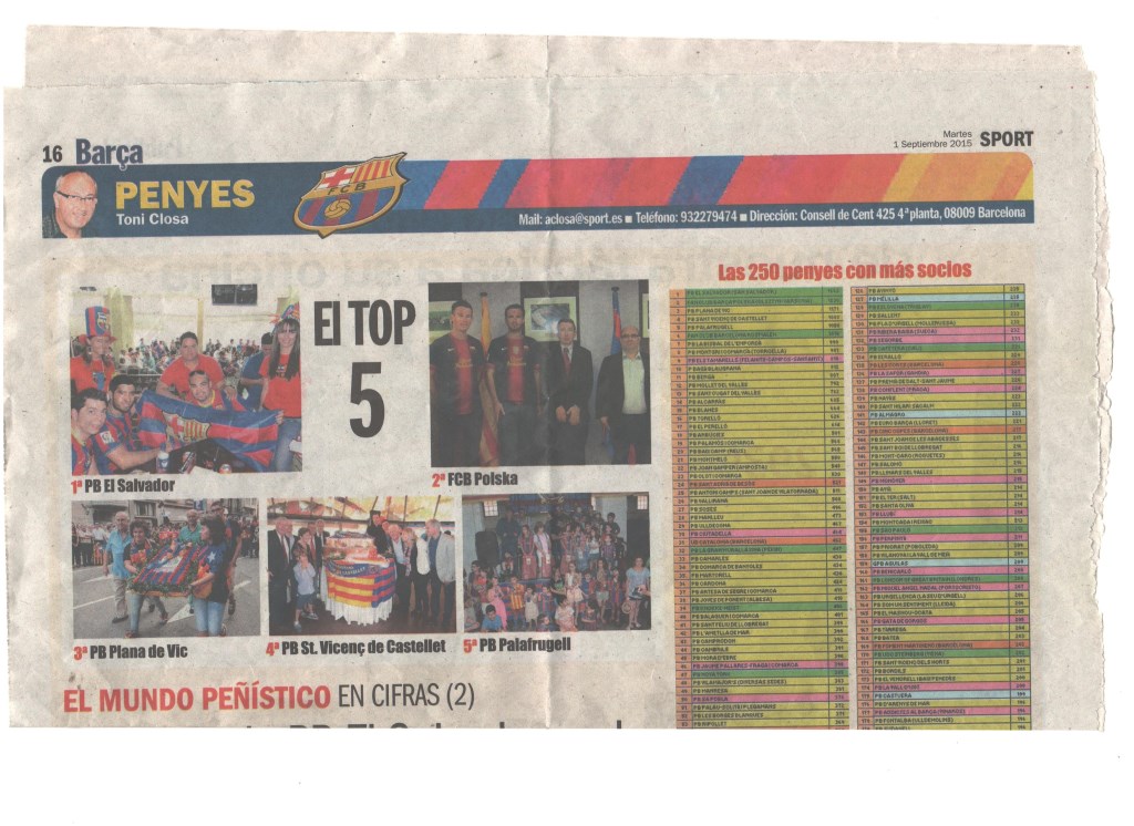 Segons el ranking que ha sortit el dia 1 de Setembre de 2015 al diari Esport la Penya Barcelonista Plana de Vic és la Penya més gran de Catalunya i Espanya i la tercera penya més gran del món.